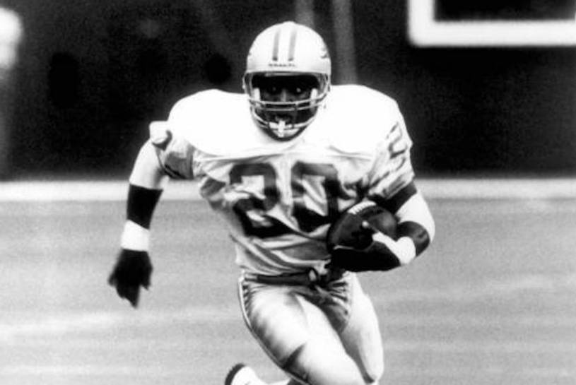 The top four players in total scrimmage yards were Thomas (2,038 yards with 12 TDs and 5 fumbles), Sanders (1,855 yards with 17 TDs and 5 fumbles), Smith (1,821 yards with 13 TDs and 8 fumbles), and Irvin (1,523 yards with 8 TDs and 3 fumbles). With Smith and Irvin being on the same team—and supported decently enough by QB Troy Aikman and his 86.7 QB rating in 10 games—it’s easy to reclassify their value, and that’s even before considering the numerous fumbles.