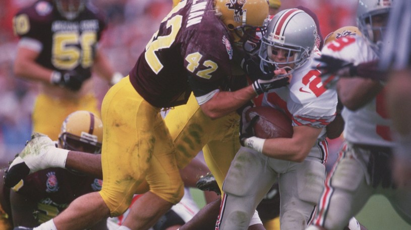 Perhaps if the Gators had scheduled a real opponent in Game 2 instead of Georgia Southern, they could have escaped here with a mythical national championship, but SOS does not lie—and neither do we. For the record, this is Ohio State’s seventh MNC from us, trailing only USC’s eight. John Cooper: You are redeemed, sir!