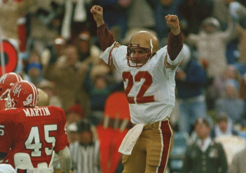 Flutie’s numbers: 3,833 total yards for 30 TDs and 11 INTs with a 152.9 QB efficiency rating. That’s a great season, although nothing specifically jumps off the page at you. As an independent, BC played the No. 34 schedule during the season, so it wasn’t a cupcake walk, but it wasn’t a gauntlet, either. Maybe it was just right for the moment, however.