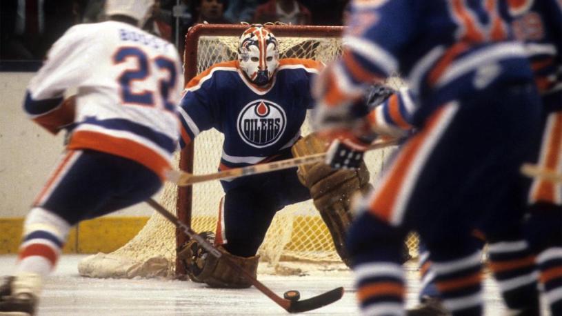 The usual suspects were scoring big for Edmonton: Gretzky (71G, 125A), Messier (48G, 58A), Anderson (48G, 56A), Kurri (45G, 59A), Coffey (29G, 67A), and also C Ken Linseman (33G, 42A, 72 games). The goalies just needed to not screw up, really: Moog (33-8-7) and Fuhr (13-12-5) were adequate enough—until the Cup Finals. Moog got all the postseason starts, and against the Isles, it was actually the offense that was stifled, scoring just six times in the four games, although N.Y. scored 17 times itself.