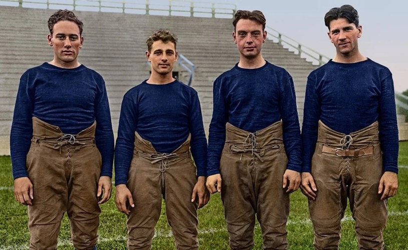 Poetic, for sure, as modern mediots wouldn’t dare write something so erudite. But Fighting Irish quarterback Harry Stuhldreher, left halfback Jim Crowley, right halfback Don Miller, and fullback Elmer Layden may have been worthy of the praise. Notre Dame was the top-ranked team in the SRS this season, going 9-0 before the Rose Bowl after playing the eighth-roughest schedule overall.